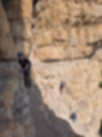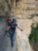 We began the climb by ascending a ladder, and after a short traverse we entered one of the more dramatic sections of the route: beneath enormous overhangs looming directly above our heads.