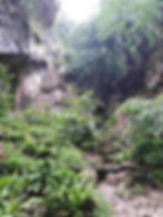 After a short climb we passed another waterfall, crossed the stream again, and scrambled up very slippery rocks to the next rope bridge.