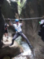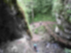 During the walk we crossed the stream running along the canyon floor several times and negotiated two rope bridges suspended above waterfalls. The second part led along the floor of the narrow canyon, where we moved over slippery boulders using iron staples mounted just above the water's surface. Apparently the place is usually full of tourists, as it is a very charming and atmospheric spot with moderate technical difficulty – but today, in the pouring rain, there was no one else there apart from us.