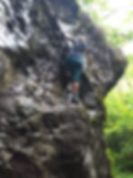 The first stage was a vertical chimney, which had to be climbed by bracing one's feet against its right and left walls. Unfortunately it began to rain heavily, making the wet rocks an additional hazard.