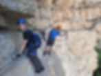 The car park is located close to the entrance, which is why everyone puts on their harness immediately upon leaving the car. After about 15 minutes' walk along the edge of an olive grove, we reached the gorge beneath the castle and from there the start of our route. The first part of the ferrata followed the rock walls of a narrow canyon, then its picturesque floor.
